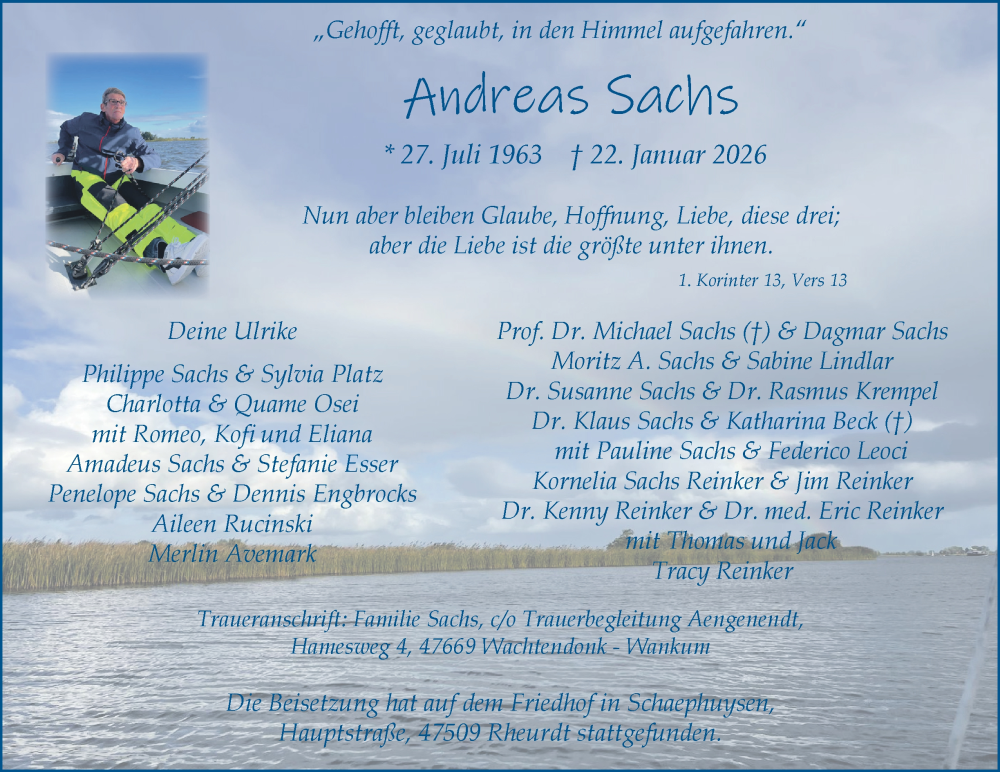 Hier finden Sie alle Traueranzeigen aus der Zeitung, die bisher für Andreas Sachs erschienen sind. Weitere Traueranzeigen, die in der Zeitung erscheinen, werden hier ebenfalls aufgelistet