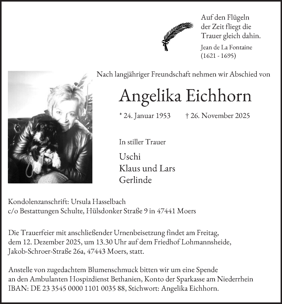 Hier finden Sie alle Traueranzeigen aus der Zeitung, die bisher für Angelika Eichhorn erschienen sind. Weitere Traueranzeigen, die in der Zeitung erscheinen, werden hier ebenfalls aufgelistet
