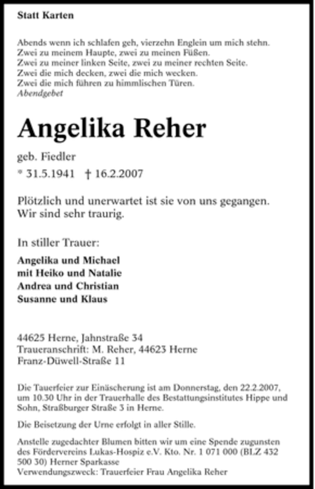 Hier finden Sie alle Traueranzeigen aus der Zeitung, die bisher für Angelika Reher erschienen sind. Weitere Traueranzeigen, die in der Zeitung erscheinen, werden hier ebenfalls aufgelistet