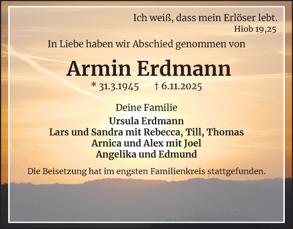 Hier finden Sie alle Traueranzeigen aus der Zeitung, die bisher für Armin Erdmann erschienen sind. Weitere Traueranzeigen, die in der Zeitung erscheinen, werden hier ebenfalls aufgelistet
