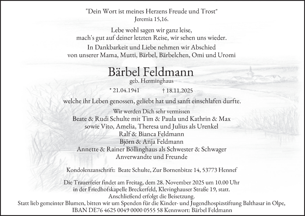 Hier finden Sie alle Traueranzeigen aus der Zeitung, die bisher für Bärbel Feldmann erschienen sind. Weitere Traueranzeigen, die in der Zeitung erscheinen, werden hier ebenfalls aufgelistet