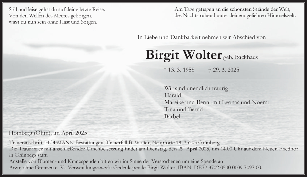 Hier finden Sie alle Traueranzeigen aus der Zeitung, die bisher für Birgit Wolter erschienen sind. Weitere Traueranzeigen, die in der Zeitung erscheinen, werden hier ebenfalls aufgelistet