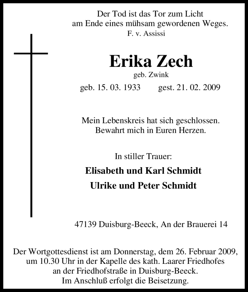 Hier finden Sie alle Traueranzeigen aus der Zeitung, die bisher für Erika Zech erschienen sind. Weitere Traueranzeigen, die in der Zeitung erscheinen, werden hier ebenfalls aufgelistet