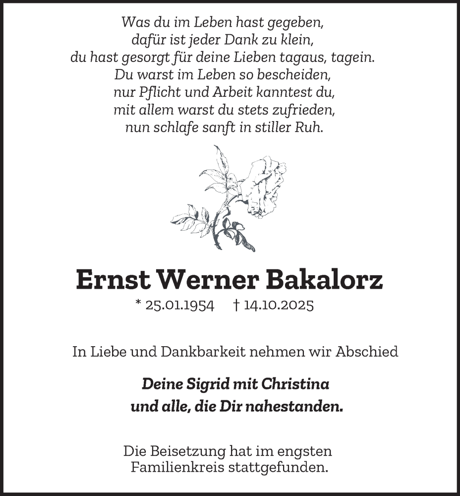 Hier finden Sie alle Traueranzeigen aus der Zeitung, die bisher für Ernst Werner Bakalorz erschienen sind. Weitere Traueranzeigen, die in der Zeitung erscheinen, werden hier ebenfalls aufgelistet