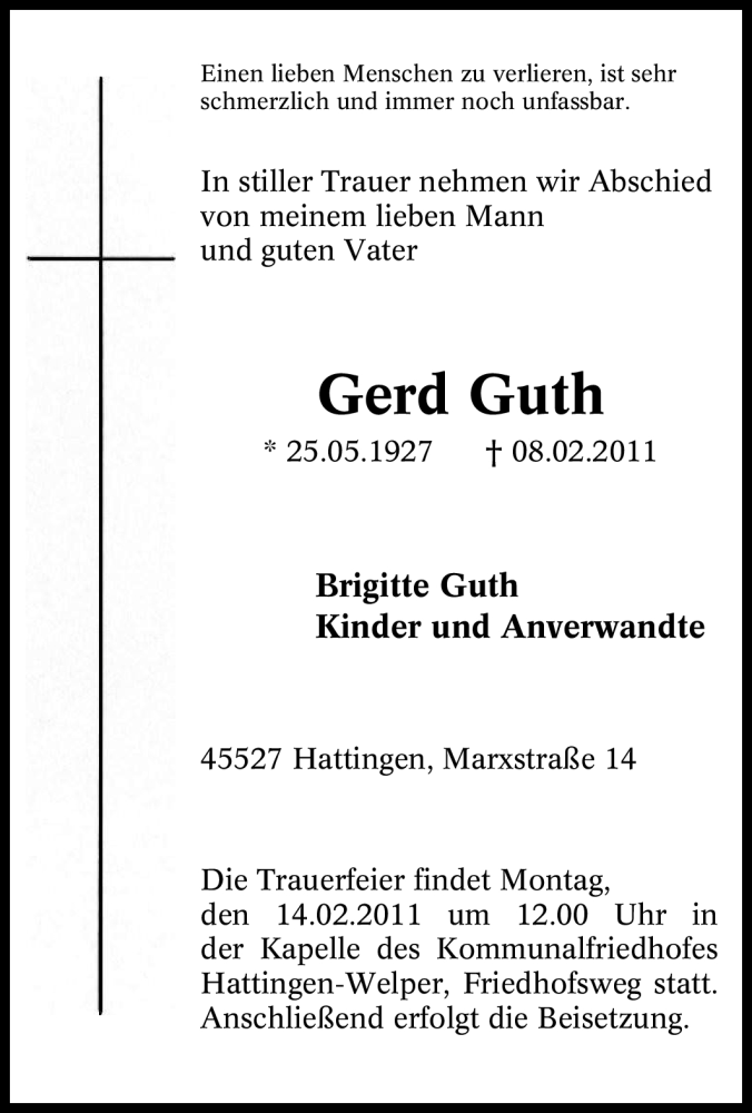 Hier finden Sie alle Traueranzeigen aus der Zeitung, die bisher für Gerd Guth erschienen sind. Weitere Traueranzeigen, die in der Zeitung erscheinen, werden hier ebenfalls aufgelistet