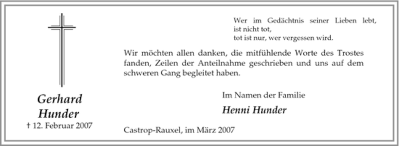 Hier finden Sie alle Traueranzeigen aus der Zeitung, die bisher für Gerhard Hunder erschienen sind. Weitere Traueranzeigen, die in der Zeitung erscheinen, werden hier ebenfalls aufgelistet