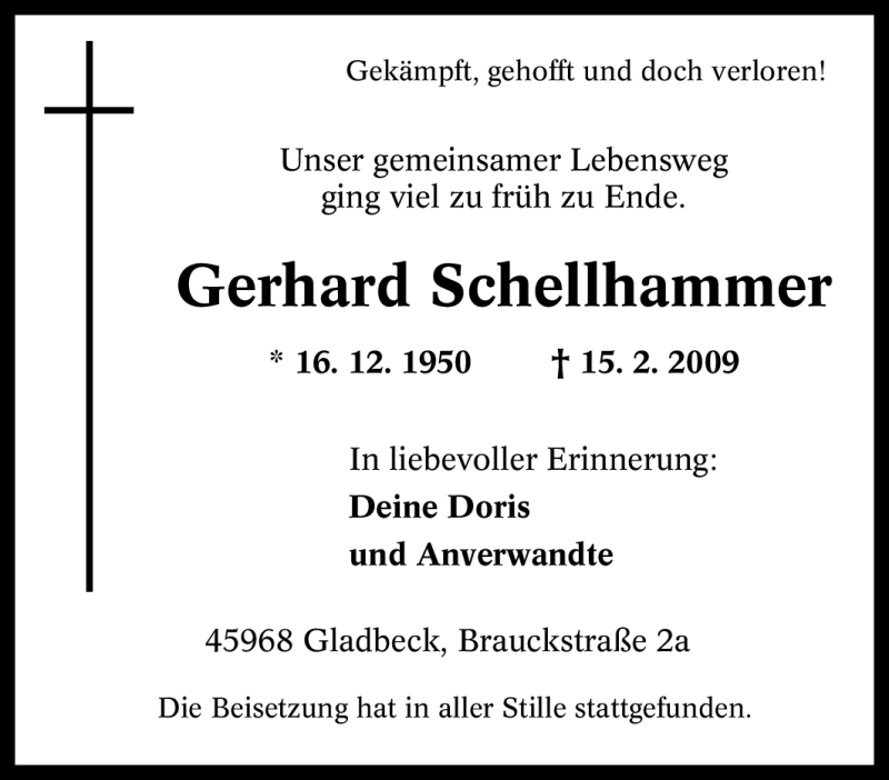 Hier finden Sie alle Traueranzeigen aus der Zeitung, die bisher für Gerhard Schellhammer erschienen sind. Weitere Traueranzeigen, die in der Zeitung erscheinen, werden hier ebenfalls aufgelistet