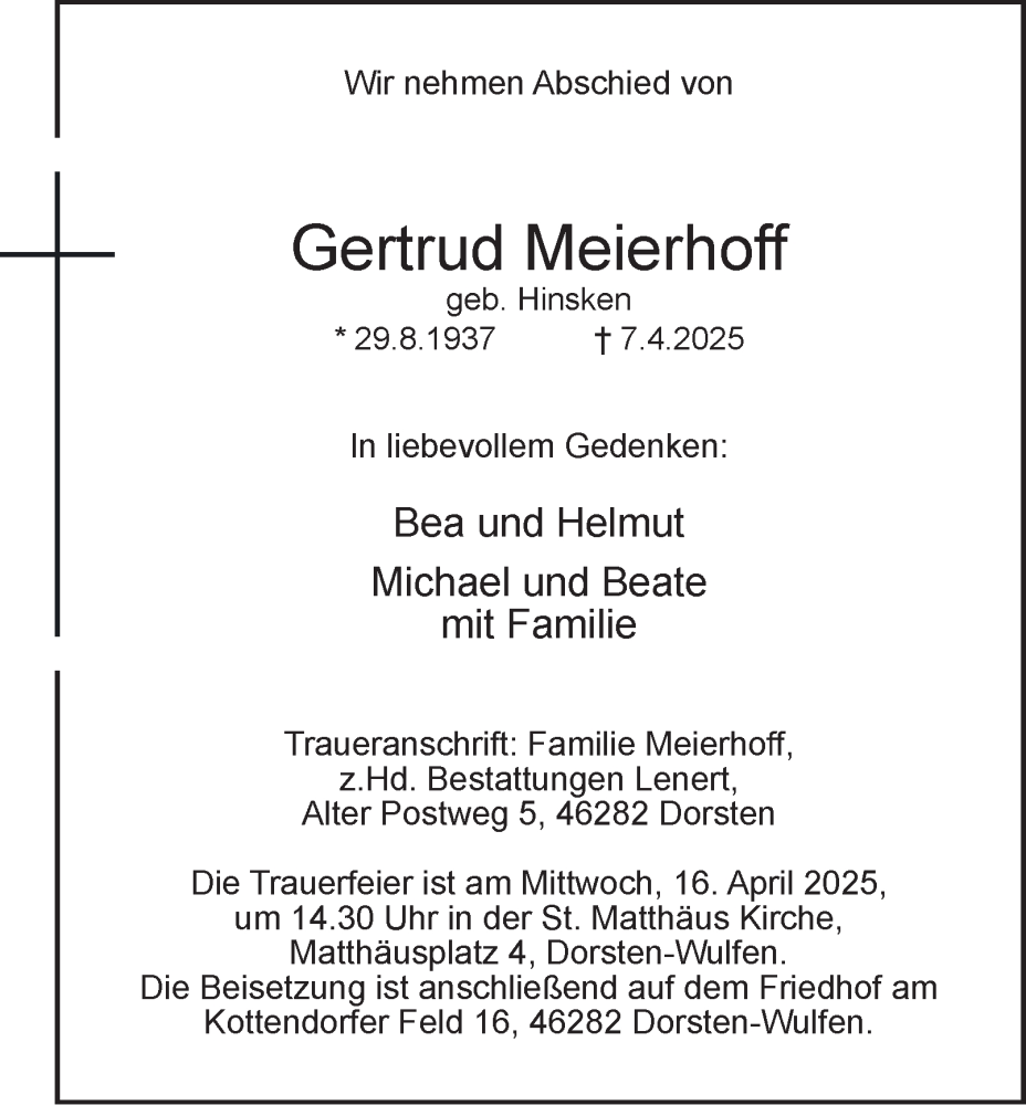 Hier finden Sie alle Traueranzeigen aus der Zeitung, die bisher für Gertrud Meierhoff erschienen sind. Weitere Traueranzeigen, die in der Zeitung erscheinen, werden hier ebenfalls aufgelistet
