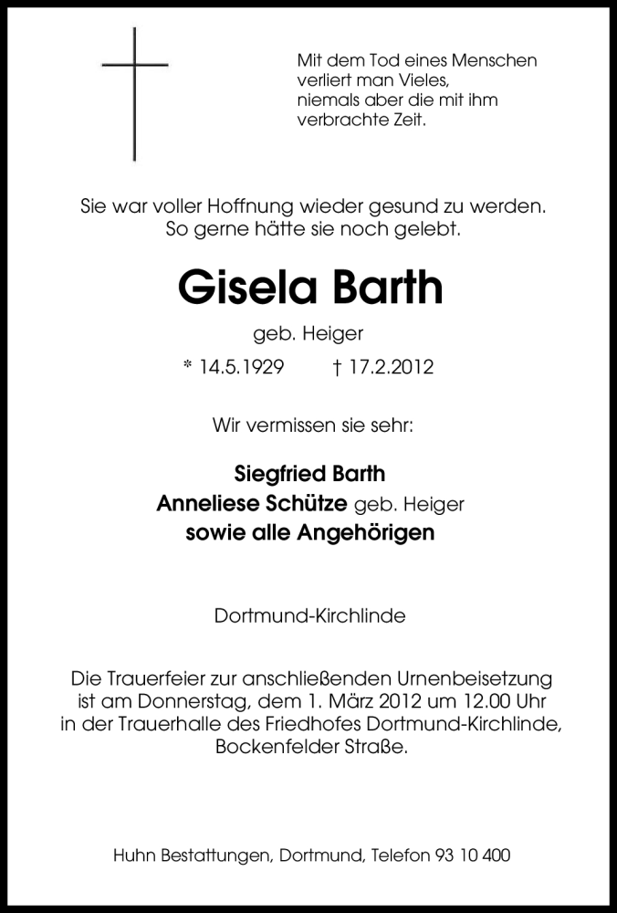 Hier finden Sie alle Traueranzeigen aus der Zeitung, die bisher für Gisela Barth erschienen sind. Weitere Traueranzeigen, die in der Zeitung erscheinen, werden hier ebenfalls aufgelistet