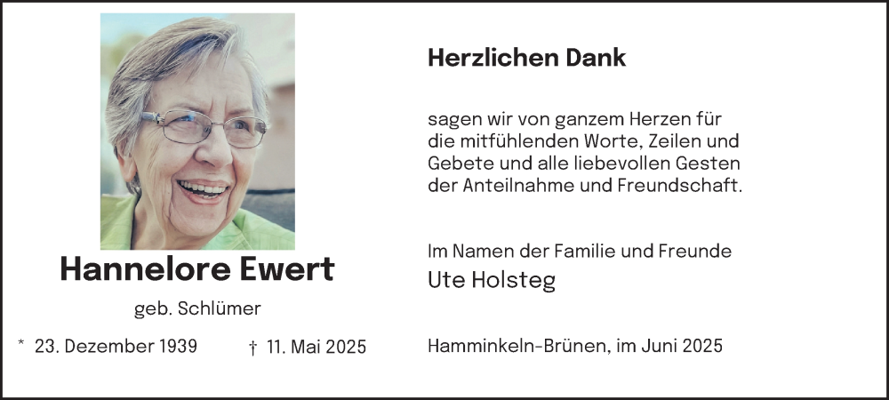 Hier finden Sie alle Traueranzeigen aus der Zeitung, die bisher für Hannelore Ewert erschienen sind. Weitere Traueranzeigen, die in der Zeitung erscheinen, werden hier ebenfalls aufgelistet
