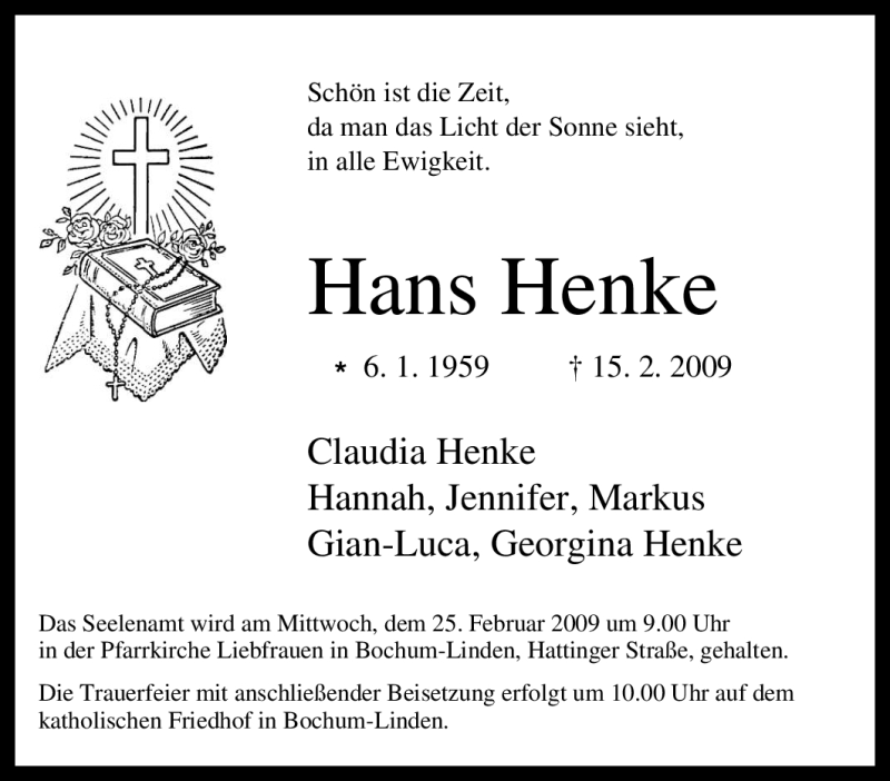 Hier finden Sie alle Traueranzeigen aus der Zeitung, die bisher für Hans Henke erschienen sind. Weitere Traueranzeigen, die in der Zeitung erscheinen, werden hier ebenfalls aufgelistet