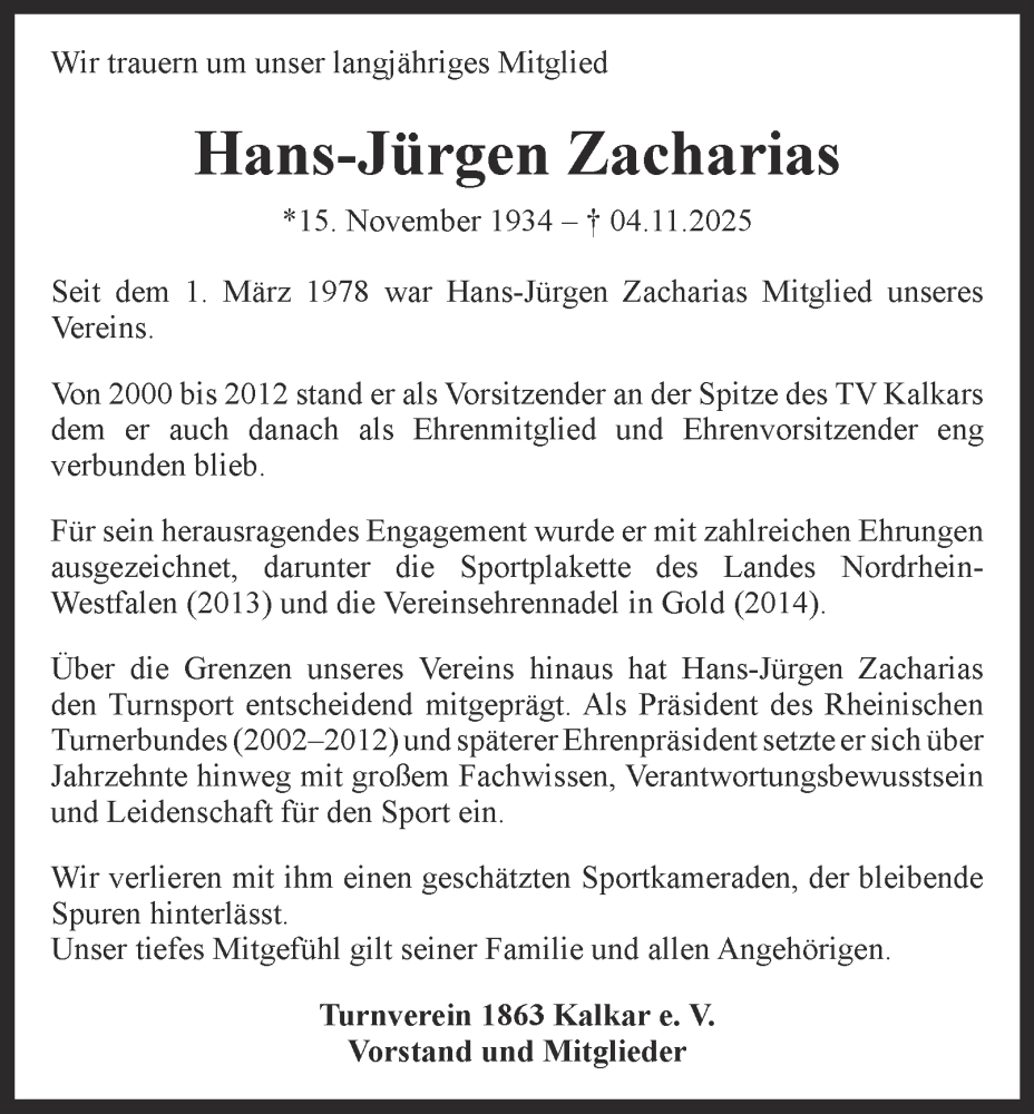 Hier finden Sie alle Traueranzeigen aus der Zeitung, die bisher für Hans-Jürgen Zacharias erschienen sind. Weitere Traueranzeigen, die in der Zeitung erscheinen, werden hier ebenfalls aufgelistet