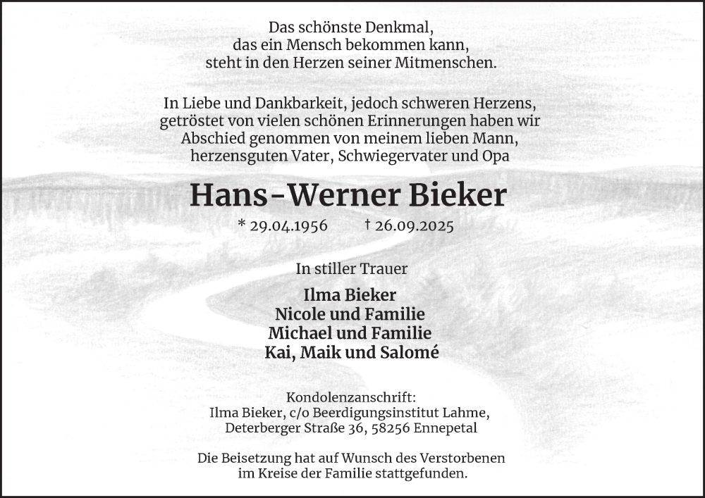 Hier finden Sie alle Traueranzeigen aus der Zeitung, die bisher für Hans-Werner Bieker erschienen sind. Weitere Traueranzeigen, die in der Zeitung erscheinen, werden hier ebenfalls aufgelistet