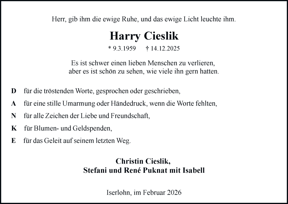 Hier finden Sie alle Traueranzeigen aus der Zeitung, die bisher für Harry Cieslik erschienen sind. Weitere Traueranzeigen, die in der Zeitung erscheinen, werden hier ebenfalls aufgelistet