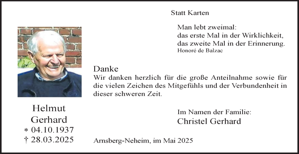 Hier finden Sie alle Traueranzeigen aus der Zeitung, die bisher für Helmut Gerhard erschienen sind. Weitere Traueranzeigen, die in der Zeitung erscheinen, werden hier ebenfalls aufgelistet