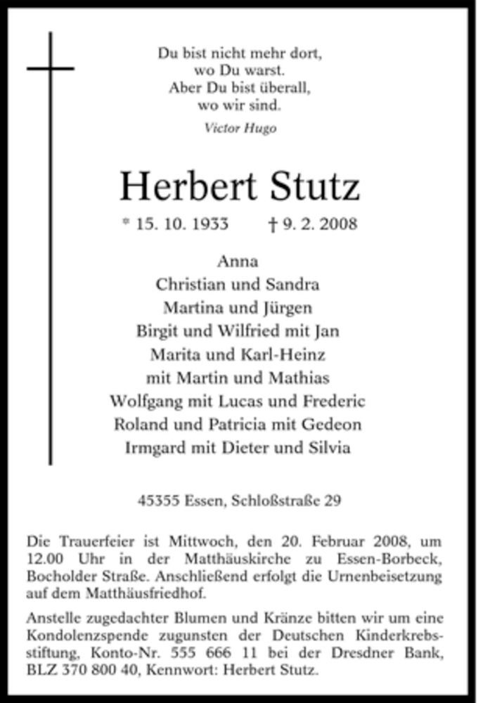 Hier finden Sie alle Traueranzeigen aus der Zeitung, die bisher für Herbert Stutz erschienen sind. Weitere Traueranzeigen, die in der Zeitung erscheinen, werden hier ebenfalls aufgelistet