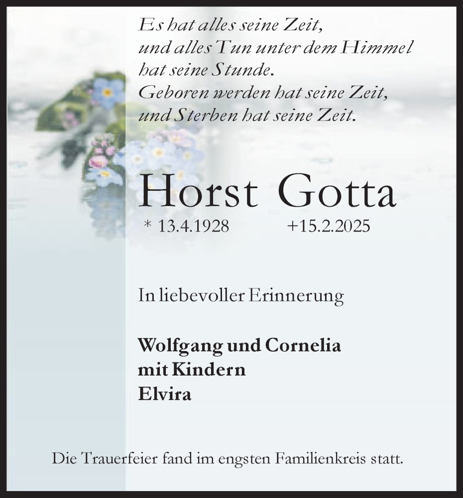 Hier finden Sie alle Traueranzeigen aus der Zeitung, die bisher für Horst Gotta erschienen sind. Weitere Traueranzeigen, die in der Zeitung erscheinen, werden hier ebenfalls aufgelistet