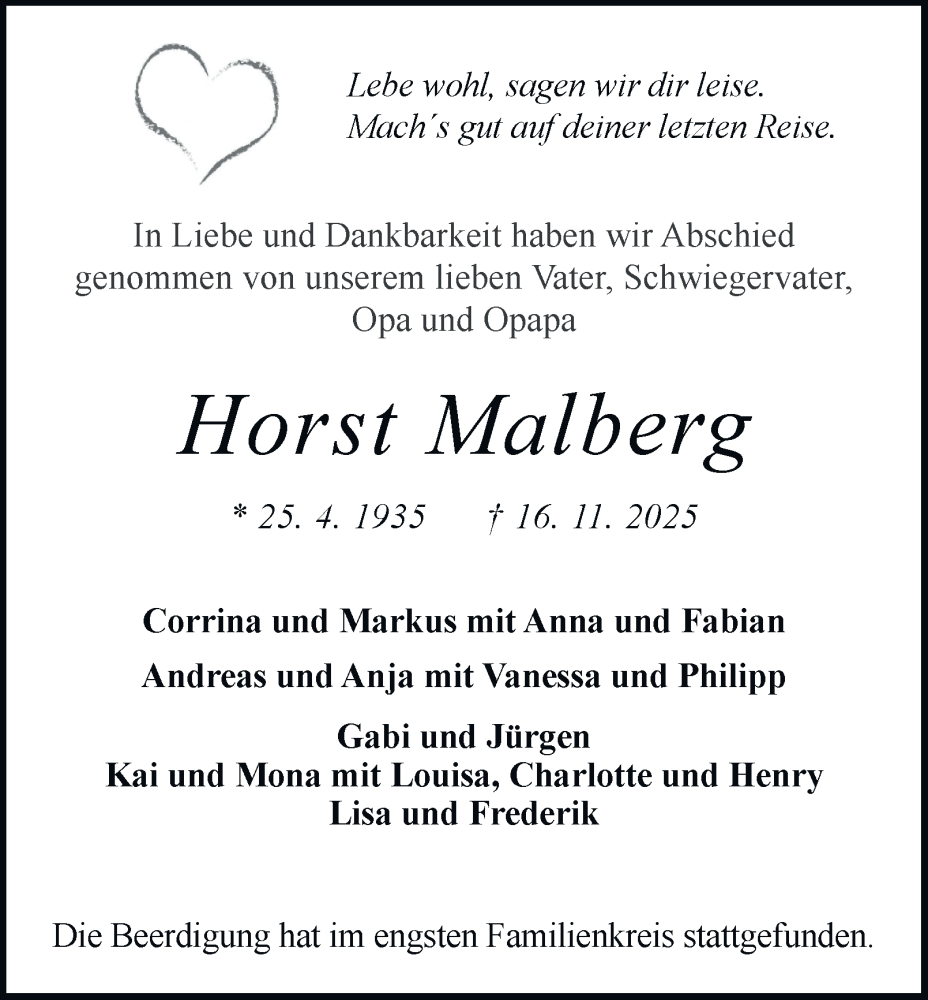 Hier finden Sie alle Traueranzeigen aus der Zeitung, die bisher für Horst Malberg erschienen sind. Weitere Traueranzeigen, die in der Zeitung erscheinen, werden hier ebenfalls aufgelistet