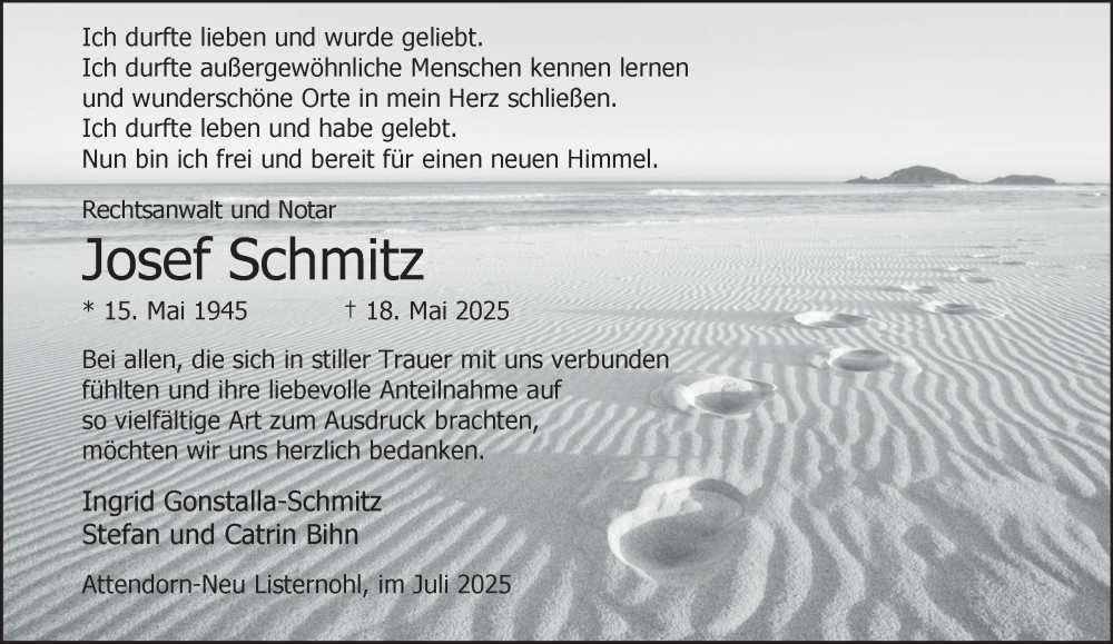 Hier finden Sie alle Traueranzeigen aus der Zeitung, die bisher für Josef Schmitz erschienen sind. Weitere Traueranzeigen, die in der Zeitung erscheinen, werden hier ebenfalls aufgelistet