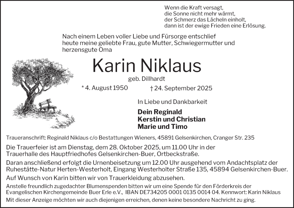 Hier finden Sie alle Traueranzeigen aus der Zeitung, die bisher für Karin Niklaus erschienen sind. Weitere Traueranzeigen, die in der Zeitung erscheinen, werden hier ebenfalls aufgelistet