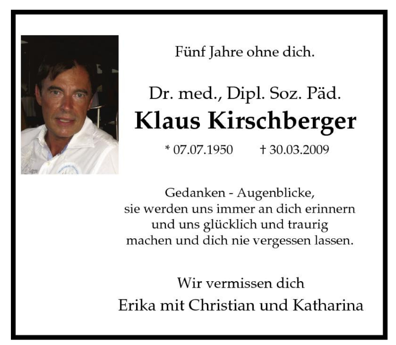 Hier finden Sie alle Traueranzeigen aus der Zeitung, die bisher für Klaus Kirschberger erschienen sind. Weitere Traueranzeigen, die in der Zeitung erscheinen, werden hier ebenfalls aufgelistet