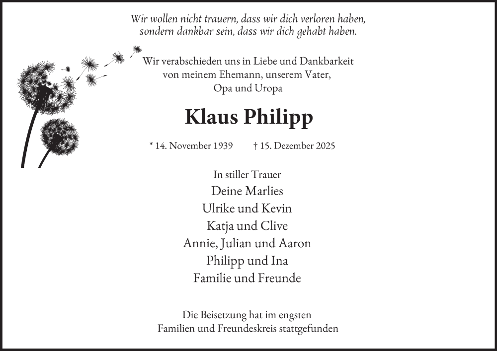 Hier finden Sie alle Traueranzeigen aus der Zeitung, die bisher für Klaus Philipp erschienen sind. Weitere Traueranzeigen, die in der Zeitung erscheinen, werden hier ebenfalls aufgelistet