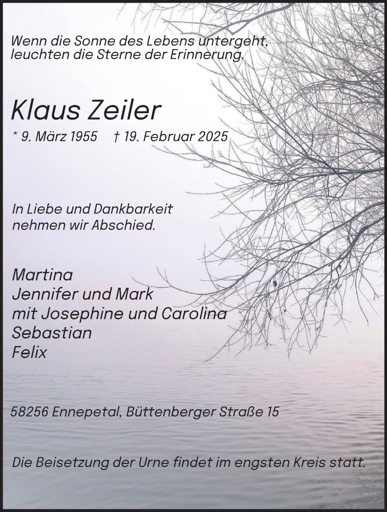Hier finden Sie alle Traueranzeigen aus der Zeitung, die bisher für Klaus Zeiler erschienen sind. Weitere Traueranzeigen, die in der Zeitung erscheinen, werden hier ebenfalls aufgelistet