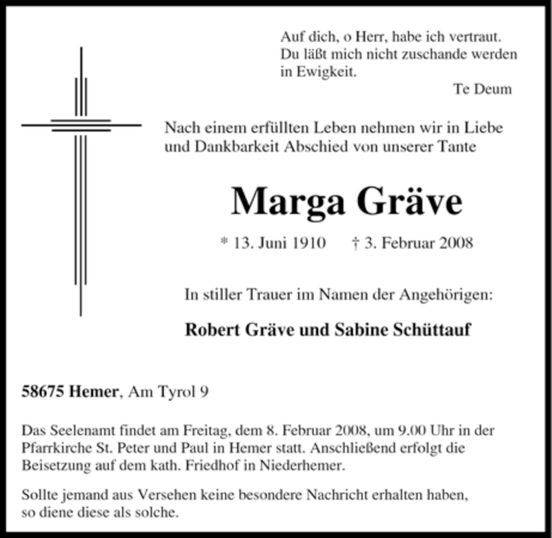 Hier finden Sie alle Traueranzeigen aus der Zeitung, die bisher für Marga Gräve erschienen sind. Weitere Traueranzeigen, die in der Zeitung erscheinen, werden hier ebenfalls aufgelistet