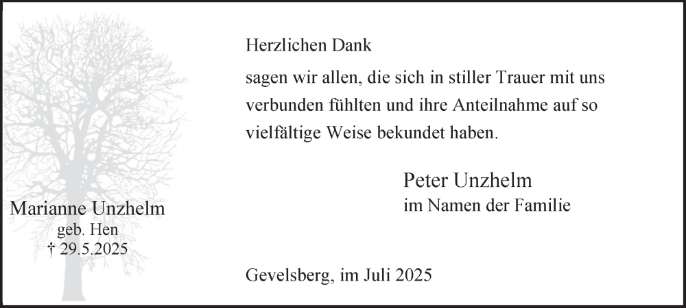 Hier finden Sie alle Traueranzeigen aus der Zeitung, die bisher für Marianne Unzhelm erschienen sind. Weitere Traueranzeigen, die in der Zeitung erscheinen, werden hier ebenfalls aufgelistet