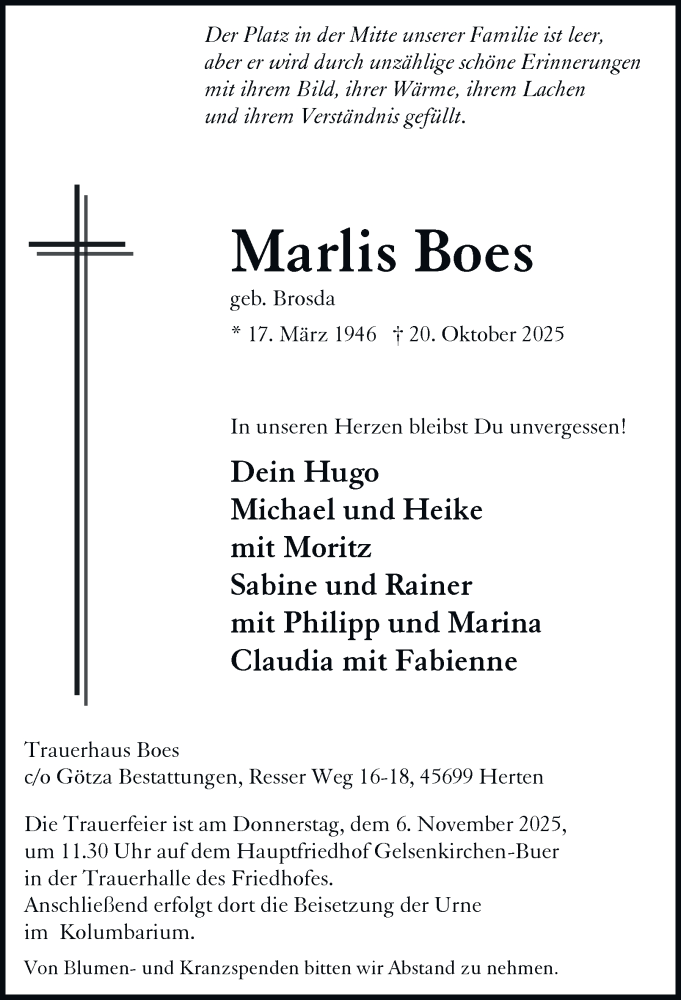 Hier finden Sie alle Traueranzeigen aus der Zeitung, die bisher für Marlis Boes erschienen sind. Weitere Traueranzeigen, die in der Zeitung erscheinen, werden hier ebenfalls aufgelistet