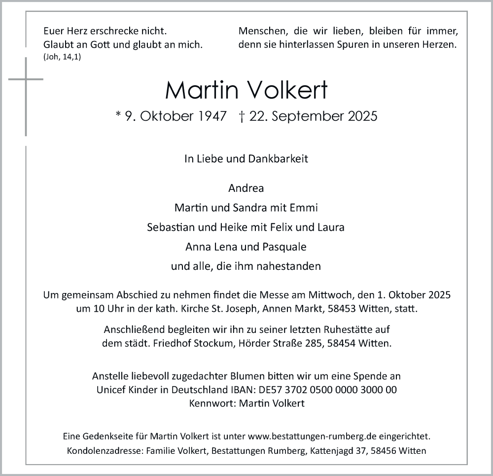 Hier finden Sie alle Traueranzeigen aus der Zeitung, die bisher für Martin Volkert erschienen sind. Weitere Traueranzeigen, die in der Zeitung erscheinen, werden hier ebenfalls aufgelistet