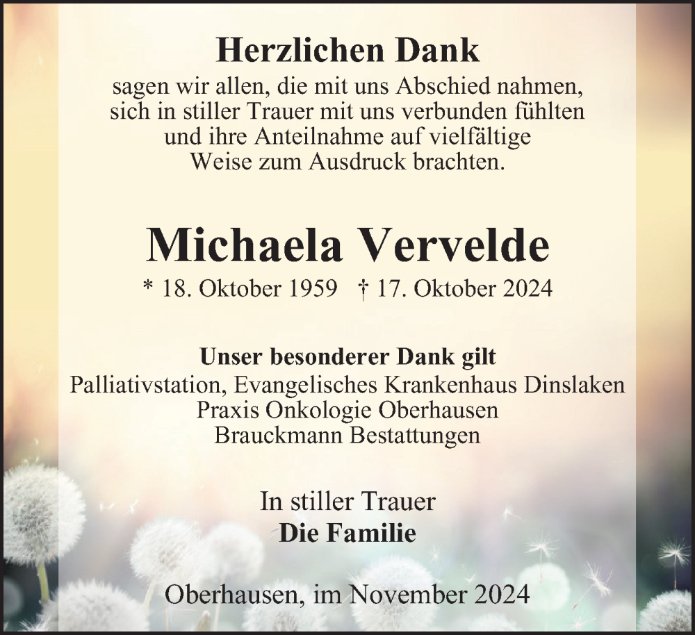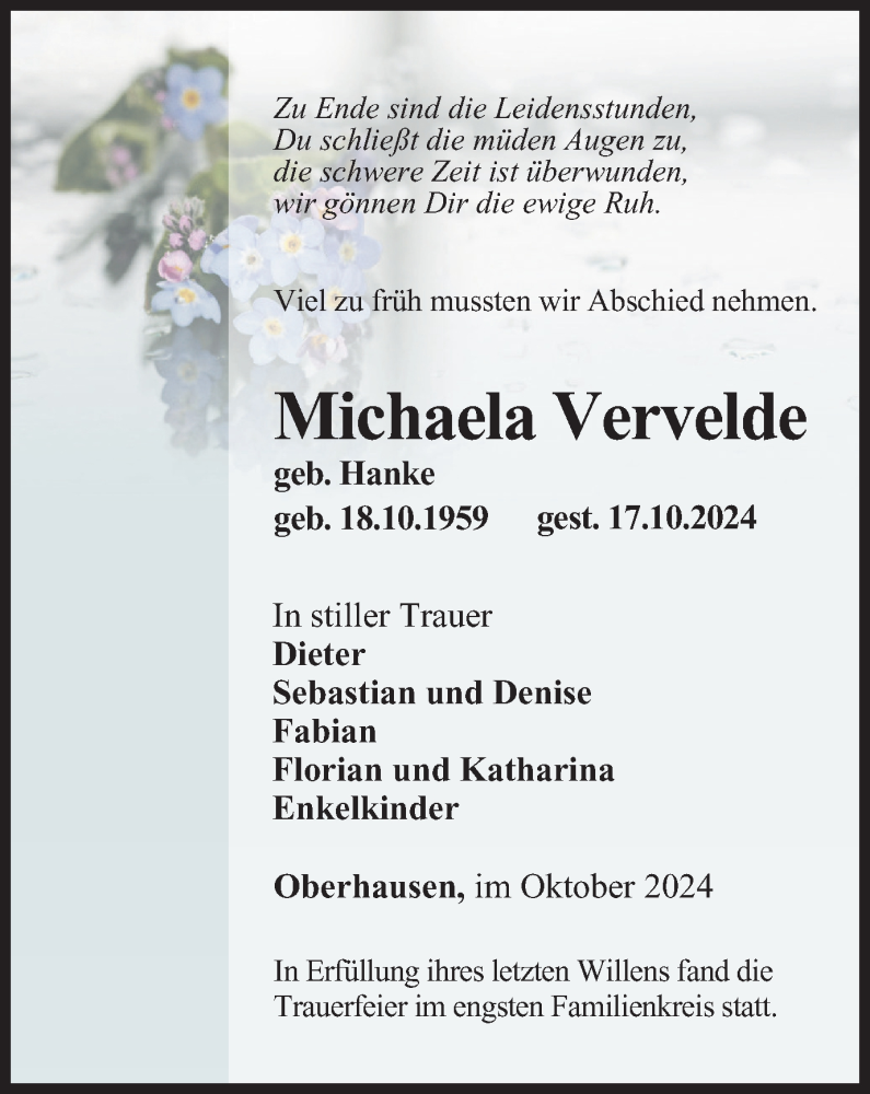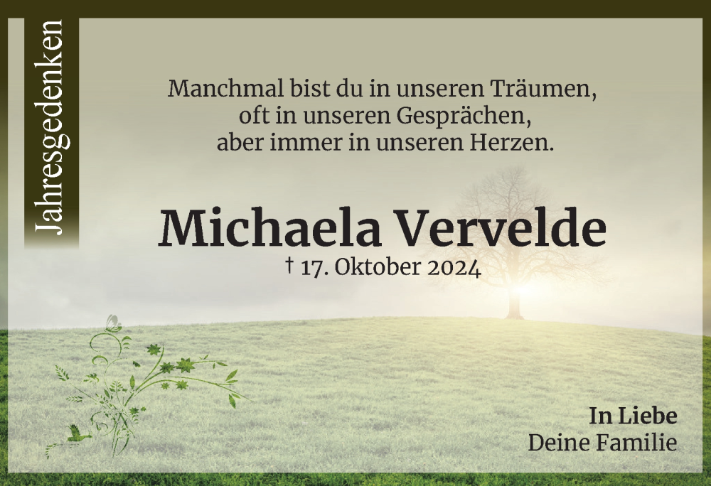 Hier finden Sie alle Traueranzeigen aus der Zeitung, die bisher für Michaela Vervelde erschienen sind. Weitere Traueranzeigen, die in der Zeitung erscheinen, werden hier ebenfalls aufgelistet