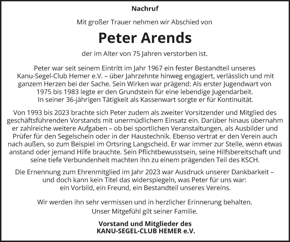 Hier finden Sie alle Traueranzeigen aus der Zeitung, die bisher für Peter Arends erschienen sind. Weitere Traueranzeigen, die in der Zeitung erscheinen, werden hier ebenfalls aufgelistet