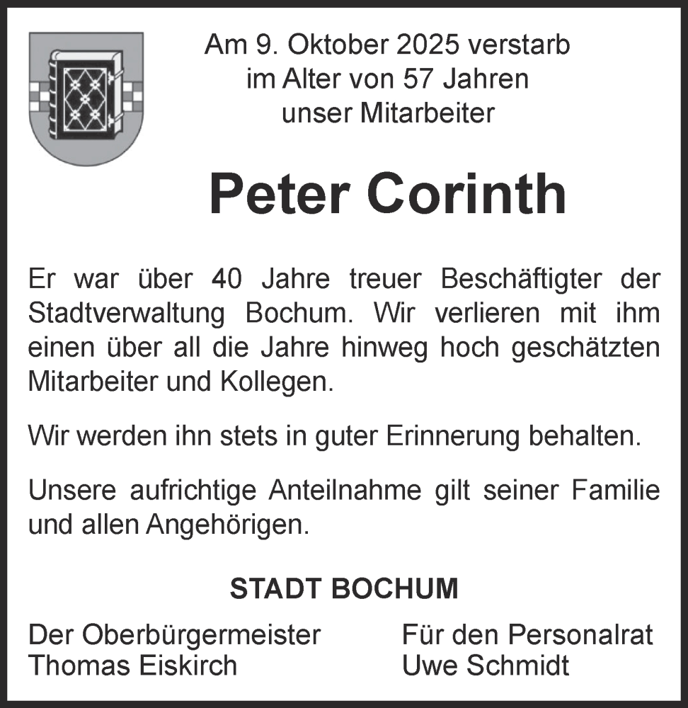 Hier finden Sie alle Traueranzeigen aus der Zeitung, die bisher für Peter Corinth erschienen sind. Weitere Traueranzeigen, die in der Zeitung erscheinen, werden hier ebenfalls aufgelistet