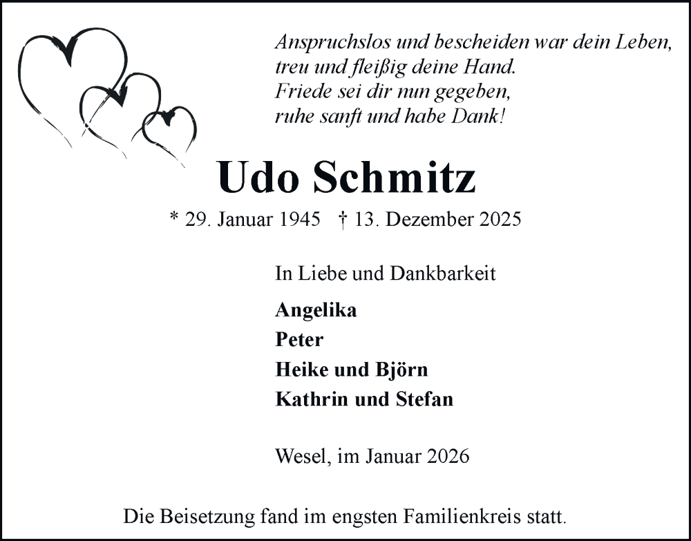 Hier finden Sie alle Traueranzeigen aus der Zeitung, die bisher für Udo Schmitz erschienen sind. Weitere Traueranzeigen, die in der Zeitung erscheinen, werden hier ebenfalls aufgelistet