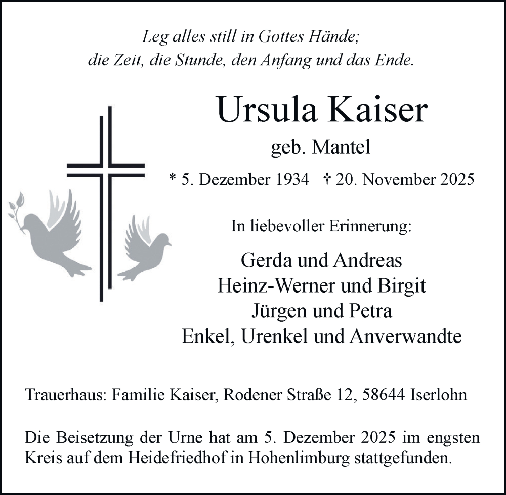 Hier finden Sie alle Traueranzeigen aus der Zeitung, die bisher für Ursula Kaiser erschienen sind. Weitere Traueranzeigen, die in der Zeitung erscheinen, werden hier ebenfalls aufgelistet