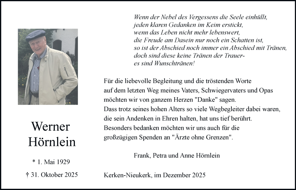 Hier finden Sie alle Traueranzeigen aus der Zeitung, die bisher für Werner Hörnlein erschienen sind. Weitere Traueranzeigen, die in der Zeitung erscheinen, werden hier ebenfalls aufgelistet