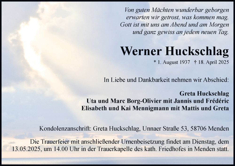Hier finden Sie alle Traueranzeigen aus der Zeitung, die bisher für Werner Huckschlag erschienen sind. Weitere Traueranzeigen, die in der Zeitung erscheinen, werden hier ebenfalls aufgelistet
