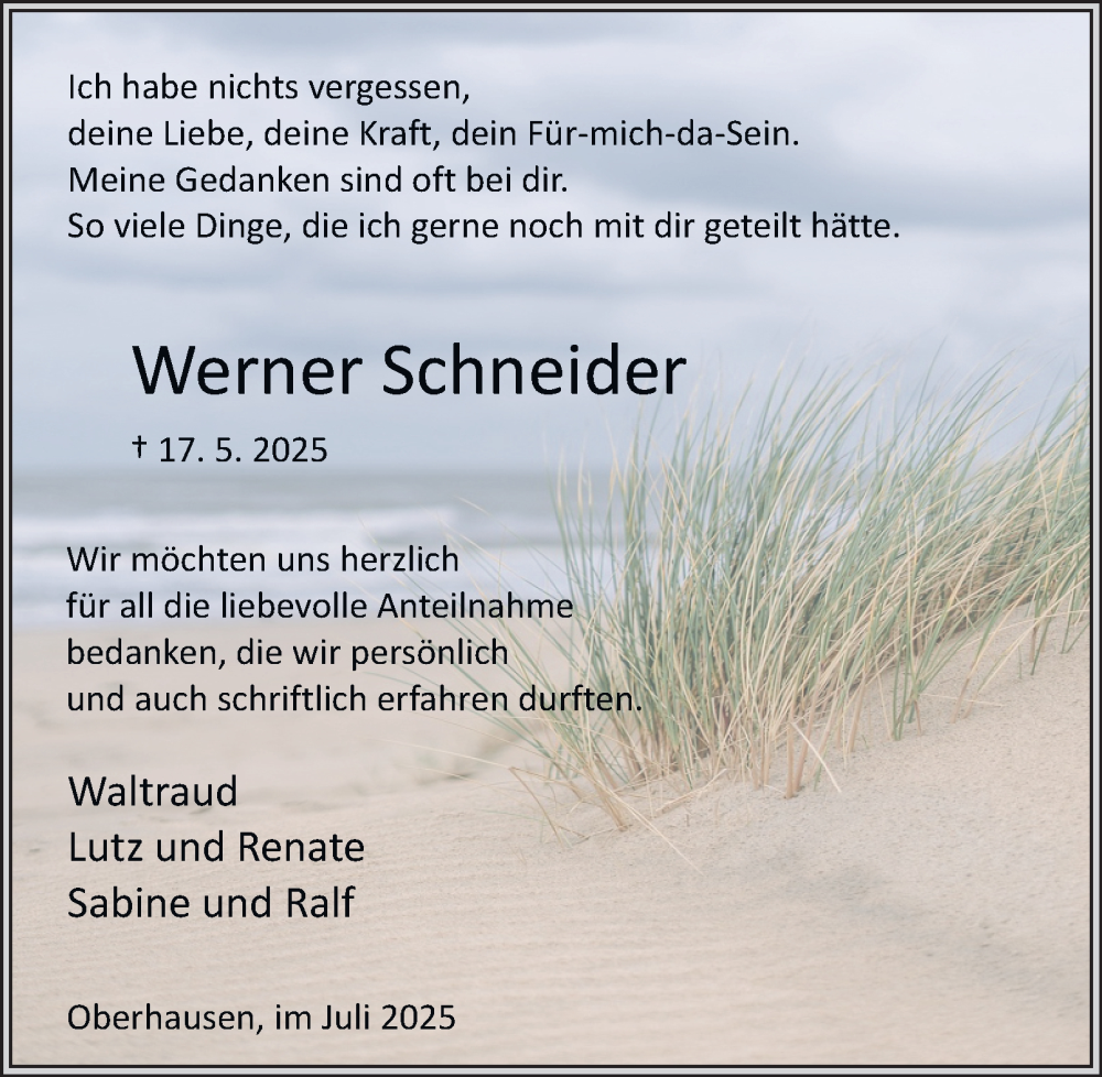 Hier finden Sie alle Traueranzeigen aus der Zeitung, die bisher für Werner Schneider erschienen sind. Weitere Traueranzeigen, die in der Zeitung erscheinen, werden hier ebenfalls aufgelistet