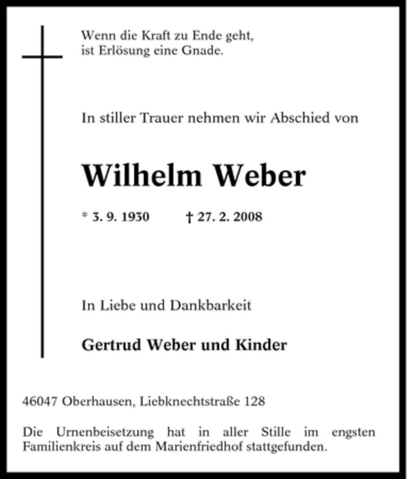 Hier finden Sie alle Traueranzeigen aus der Zeitung, die bisher für Wilhelm Weber erschienen sind. Weitere Traueranzeigen, die in der Zeitung erscheinen, werden hier ebenfalls aufgelistet